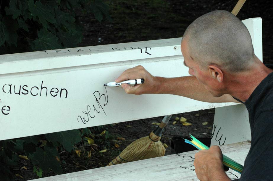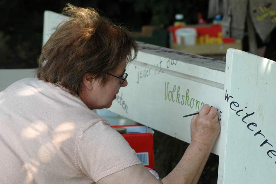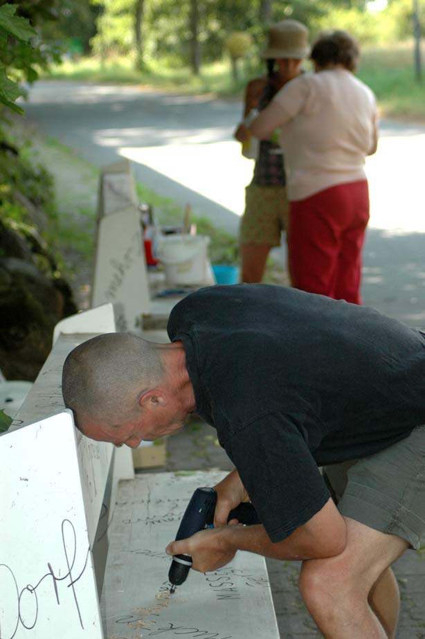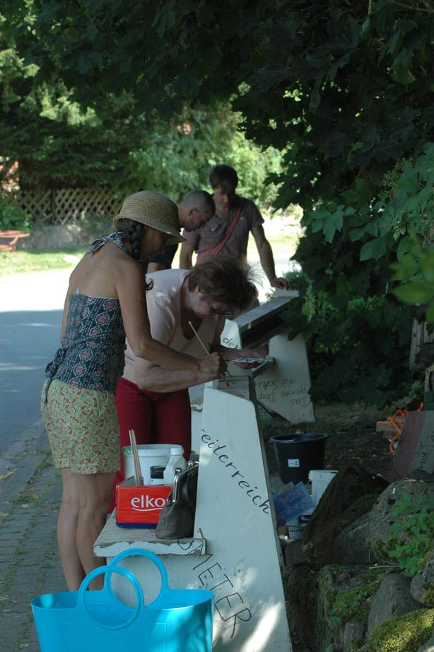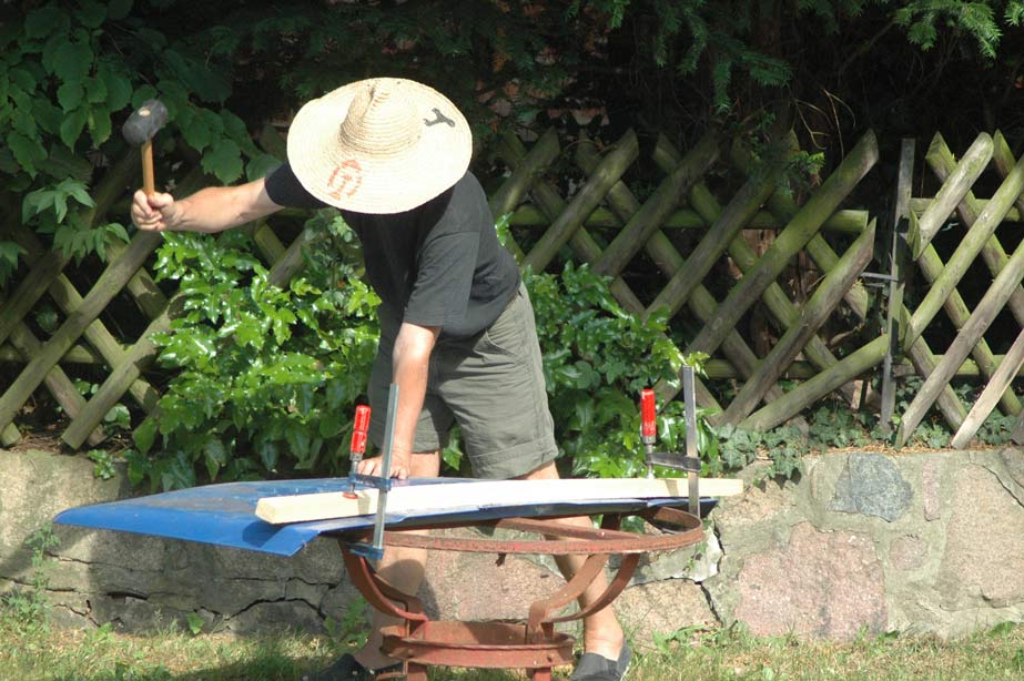 Mittwoch, 24.7. starten wir gegen Mittag mit dem Pop-Up-Stand in Tosterglope. Es werden Kirchenbänke bearbeitet und eine ‘Tischplatte’ in Form gehämmert… D A N K E an die Nachbarn für die große Hilfe! Diese Fotos hat Wolfgang Wiegand aufgenommen: