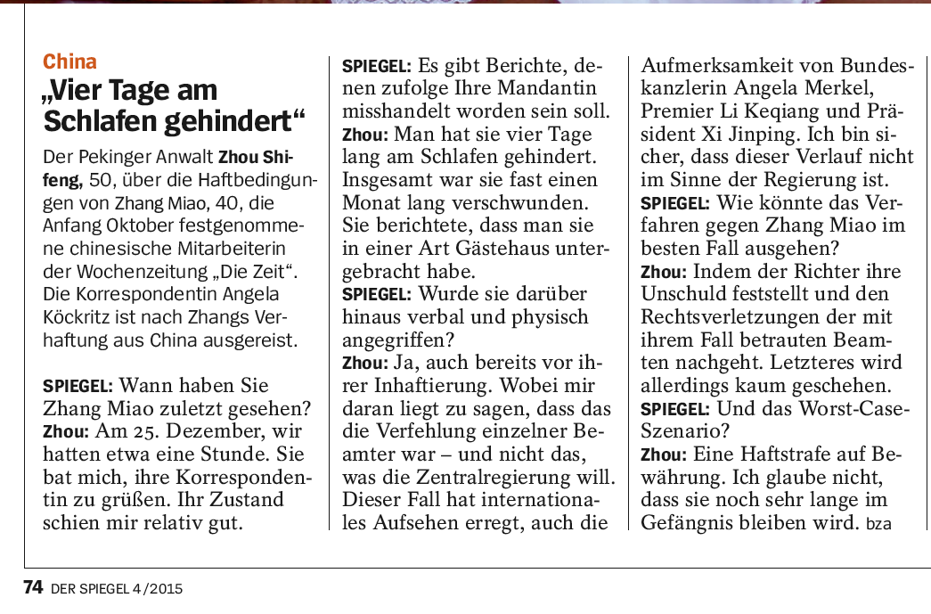 Vier Tage am schlafen gehindert | SPIEGEL 4/2015: Download