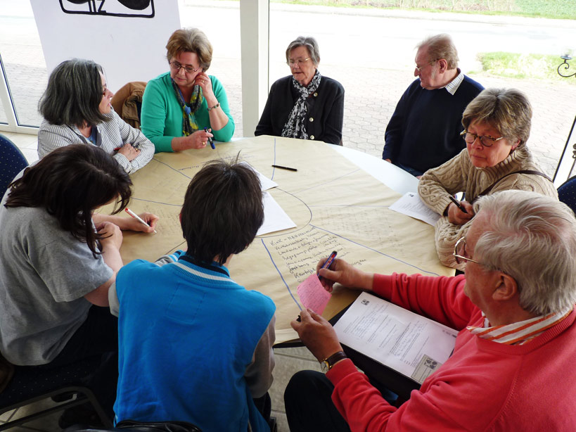 Pünktlich um 16:00 Uhr erschienen die ersten Gäste. Nach einer kurzen Vorstellungsphase starteten wir gleich mit dem Welt-Café … die runden Tische waren dafür hervoragend geeignet!