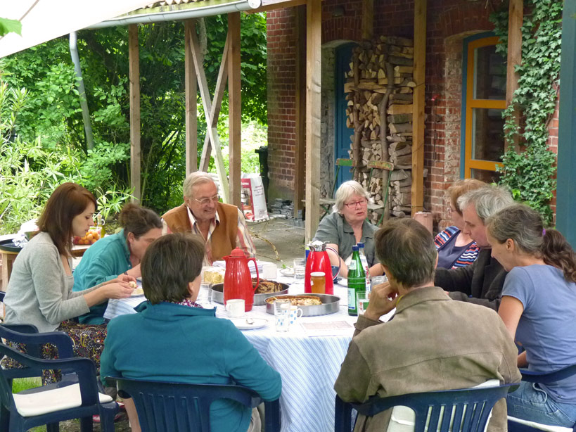 Zu wenig junge Leute hier, hören wir und dass zu viele wegziehen, zu wenig Junge bleiben, die Feuerwehr habe keinen Nachwuchs. Die Alten klagen über schlechte Busverbindungen und zu weite Einkaufswege. Die Ruhe hier auf dem Land wird gelobt. Da kann man sich natürlich auch mal über den Lärm nachbarschaftlicher Aktivitäten beschweren. Man hat sich allgemein arrangiert, aneinander gewöhnt, eingelebt und ist auch stellenweise rundum zufrieden.