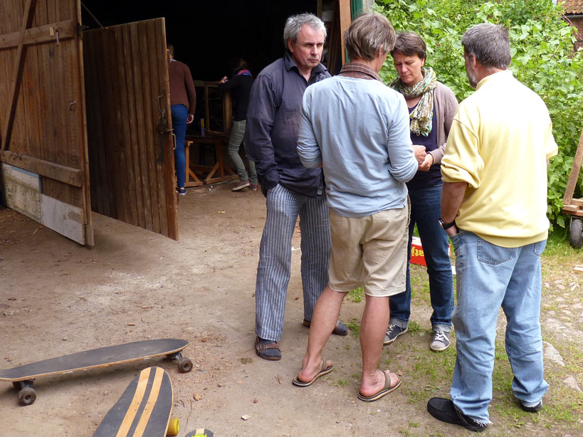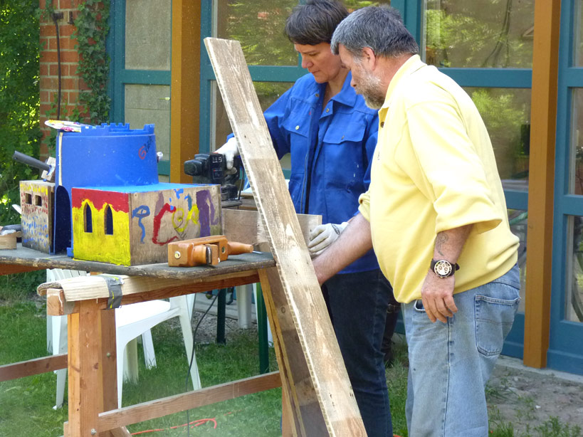 Wir werden auf dem Gelände des Kunstraums in Tosterglope eine offene Werkstatt einrichten. D.h. jeder kann zu den Zeiten der Werkstatt kommen und mit uns an Gegenständen und Objekten arbeiten, die dann im Juli für die verschiedenen Aktionen genutzt werden könnten. Die Ideen können auch noch vor Ort entwickelt werden.