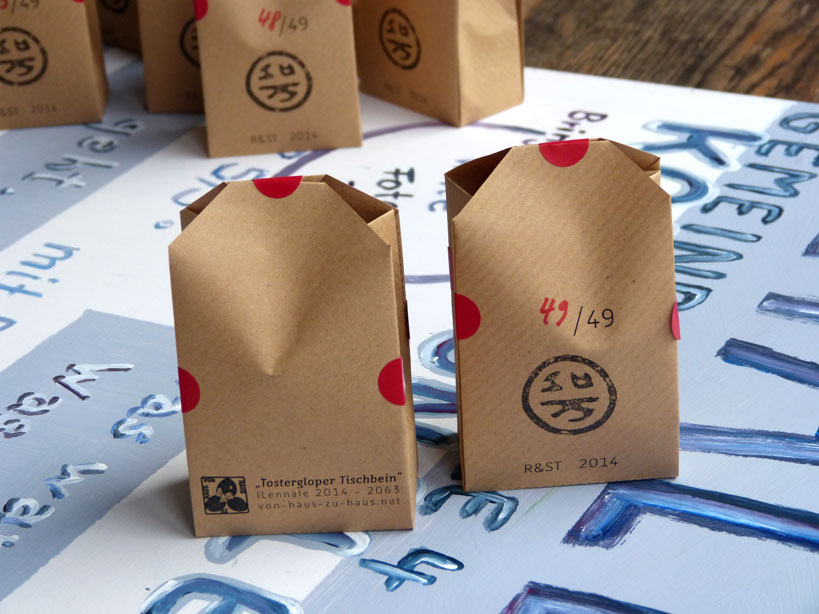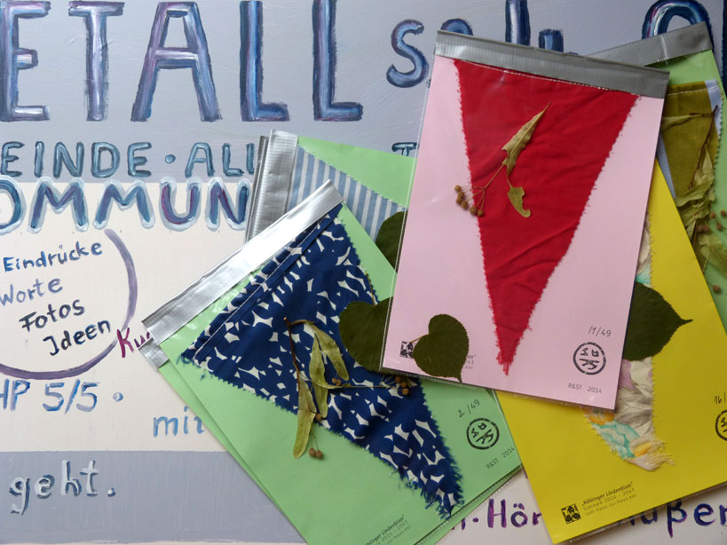 Im Anschluss trafen wir uns in Tosterglope an der Ecke beim KUNSTRAUM. Das Schild bekam einen guten Platz und ganz nebenbei wurden gleich die Pflanzen beschnitten. In der warmen Küche des KUNSTRAUMs gab es einen leckeren Imbiss und heissen Tee aus dem Samowar. ‘Work with the power around you, not against it.’